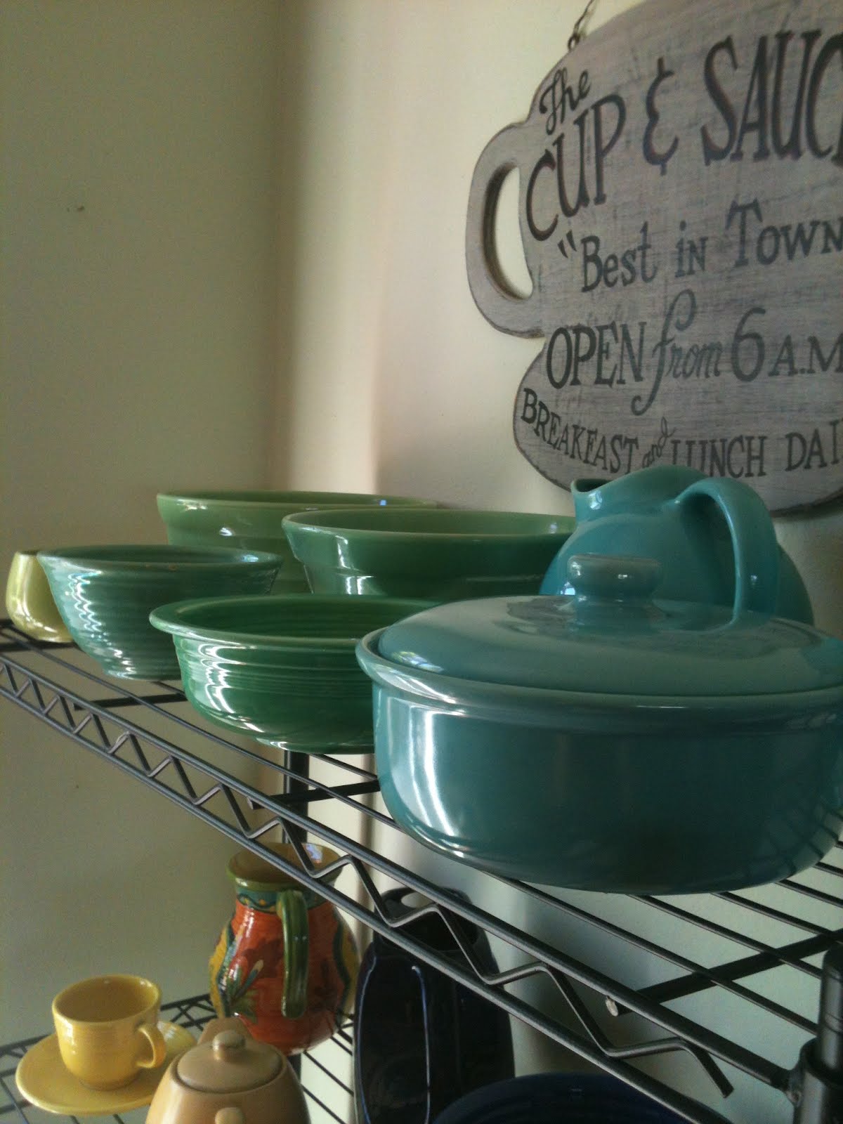 I have lately taken for granted these much cherished pieces. Back in the 90's I use to spend hours in antique and junk shops looking for anything Fiesta, Bauer, Franciscan, Frankoma, and other pottery and ceramics from the 40's and 50's. I managed to purchase a few nice pieces. V When my family realized that I collected, well, they too were always on the look out.